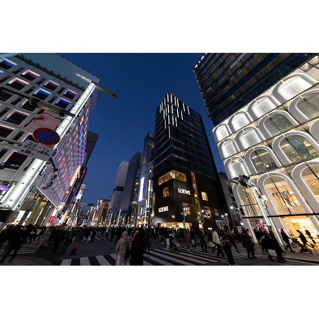 東京メトロ銀座線「銀座」駅より徒歩1分。銀座5丁目の中央通りに面した角地にある当社の東京のフラッグシップビルです。